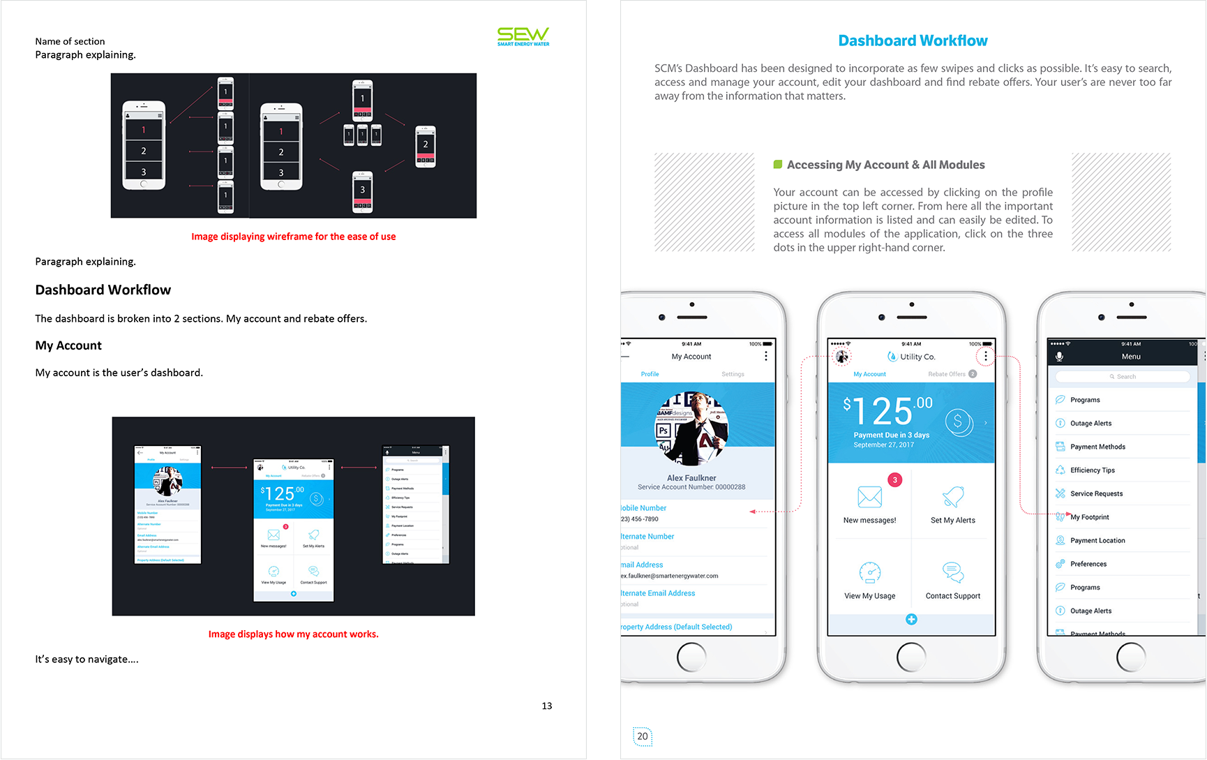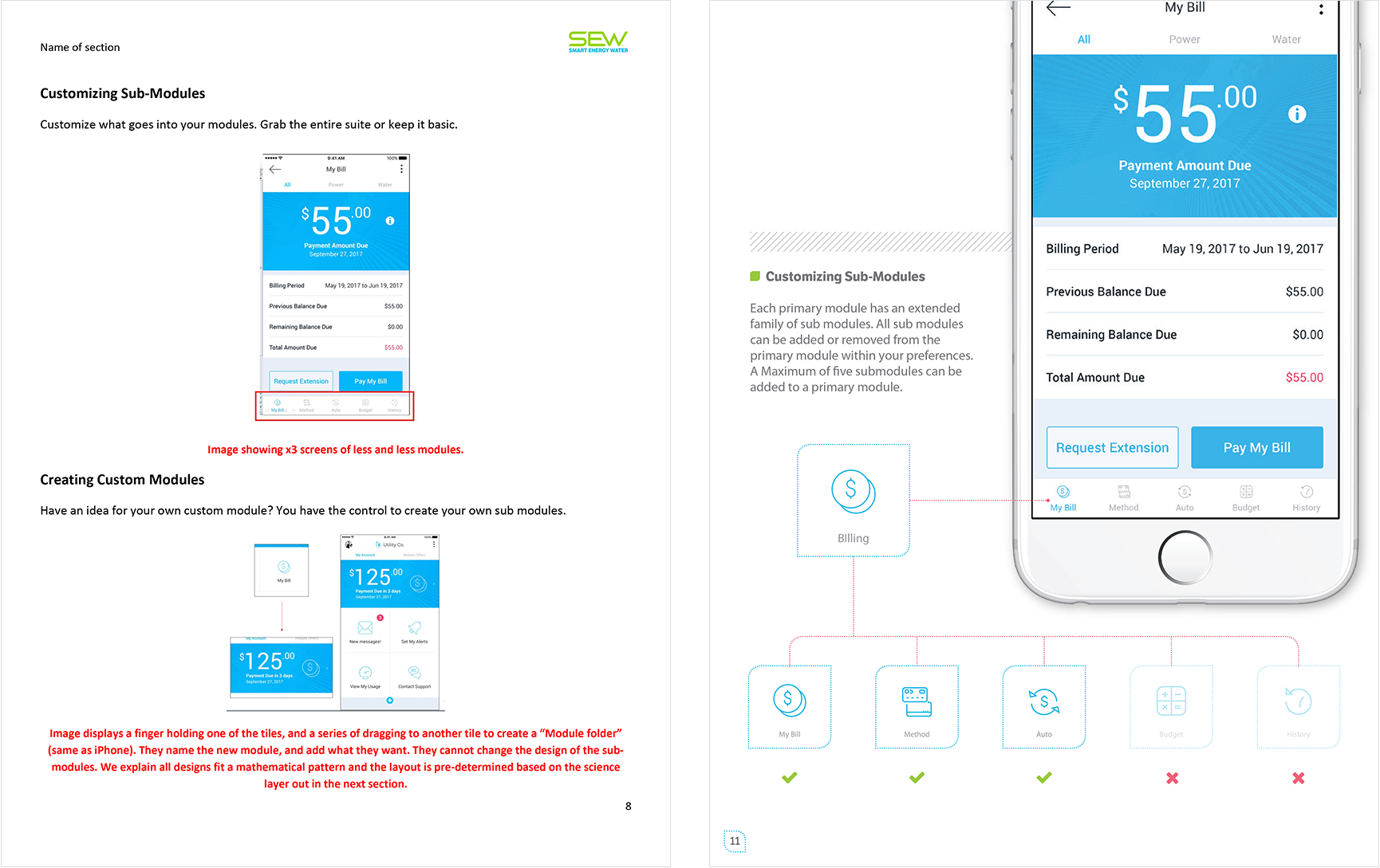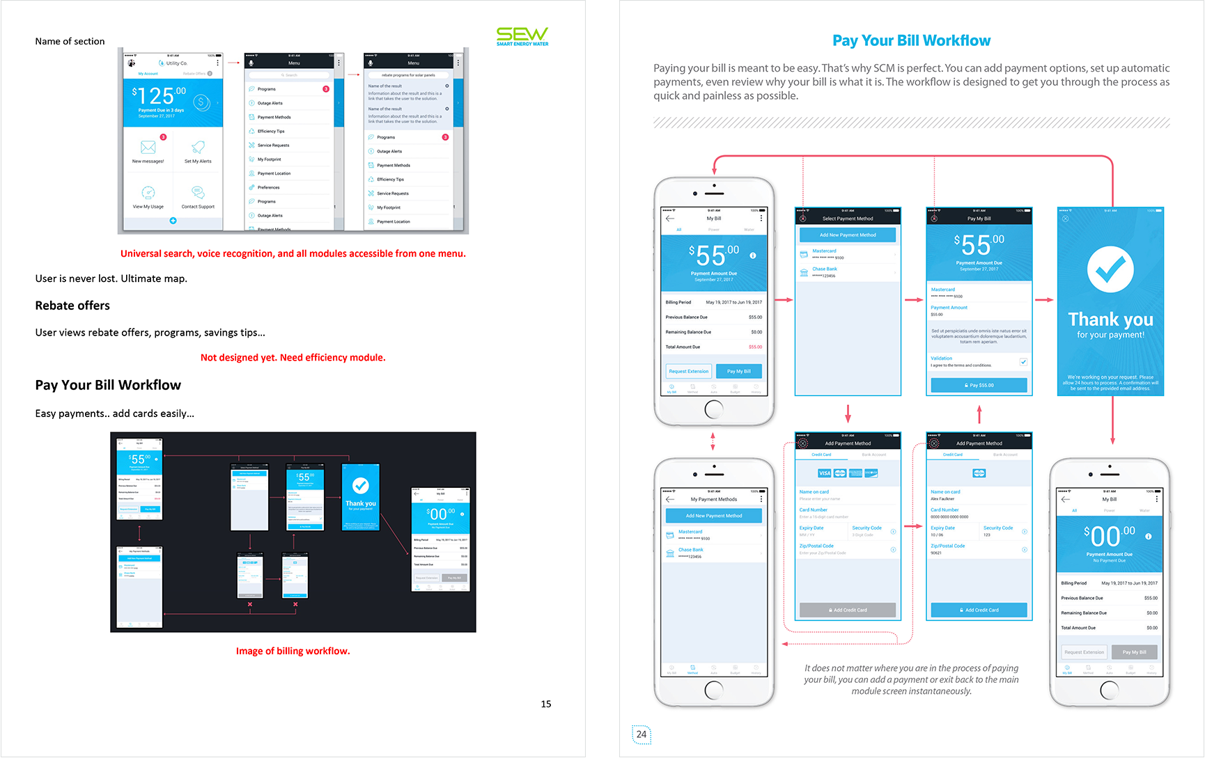 While I was designing the UI for this app, I was also thinking about how we could market it to potential clients. I created a document with the content that was requiered, then worked with my senior designer to create the layout. Below are the planning and design images created. Please contact me for further details on the Customer Payment App.